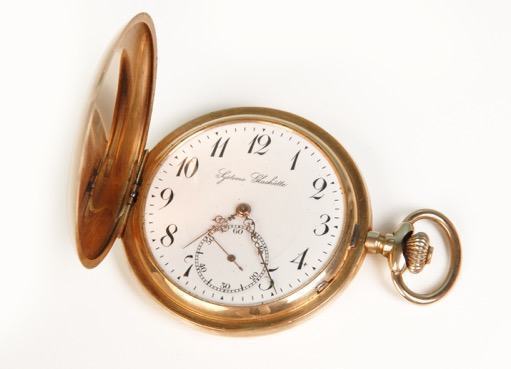 Zlata, masivna žepna ura Glashütte s sprednjim in zadnjim dvojnim pokrovom.