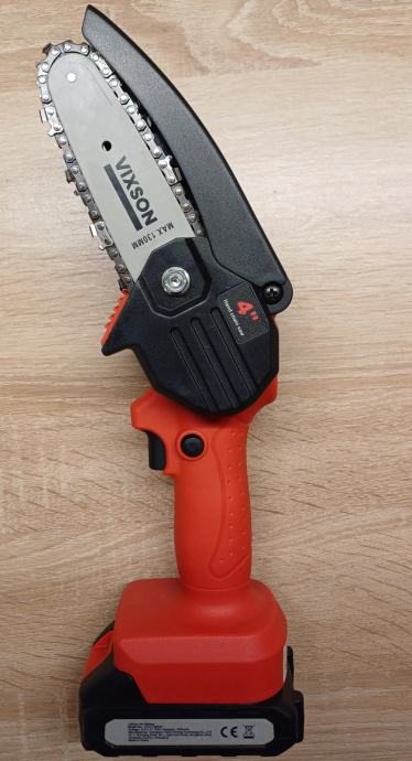 Komplet vsebuje: baterija, pokrov verige, izvijač, polnilec za baterijo.