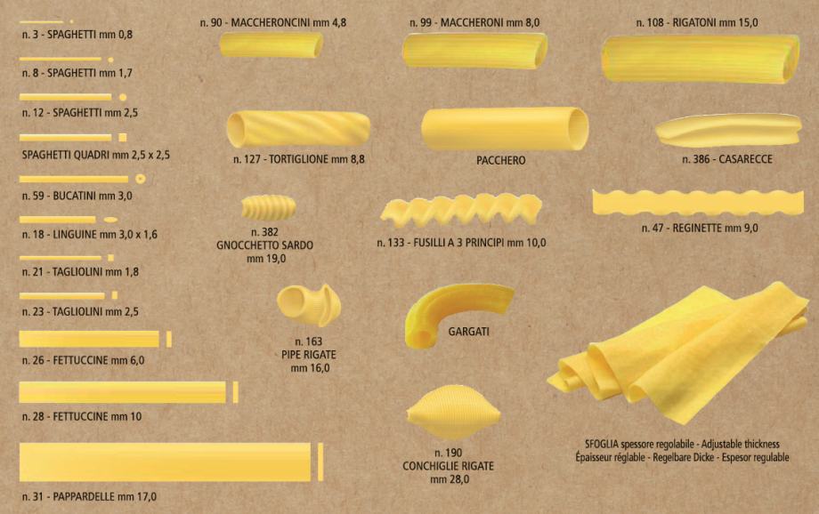 Nudimo vam nov stroj za proizvodnjo testenine model TR 70 s pestro izbiro kalupov v bronu ali teflonu.