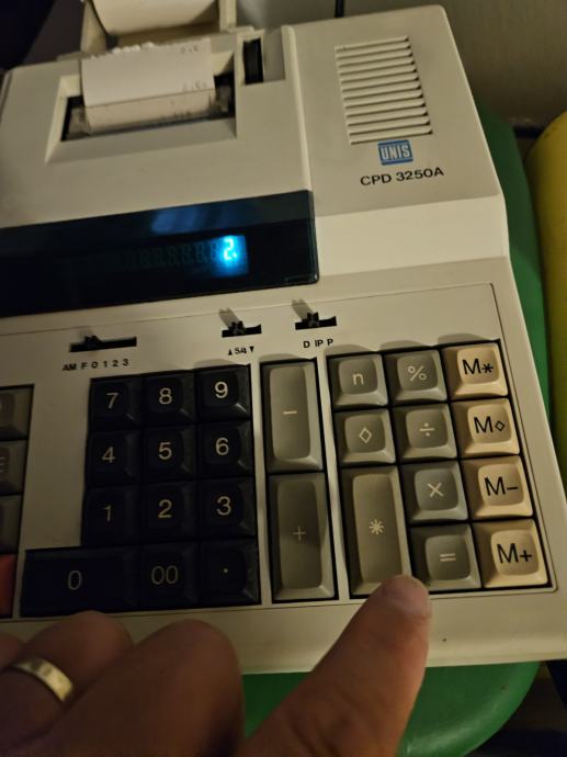 Prodam kalkulator GDP 3250, s kolutkom papirja (zelo čist izpis). Proizvajalec je bil UNIS Mostar (made in Yugoslavia, ser. št. 034829). Popolnoma je delujoč, brezhiben in zelo lepo očuvan. Primeren je tako za zbiratelje kot tudi za delo v današnjih časih. Slike so v prilogi.
