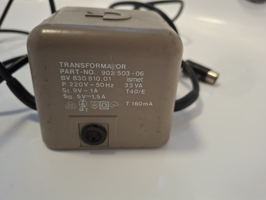 Posebnost: Ta transformator je nujen za varno delovanje C64, saj zagotavlja tako 5V enosmerne (za čipe) kot 9V izmenične napetosti (za nekatere periferne naprave in krogotja).