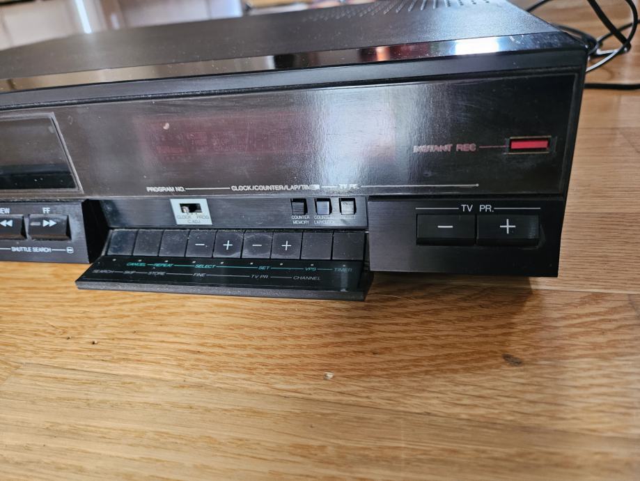 Naprodaj je vintage videorekorder znamke JVC iz leta 1986. Vizuelno precej dobro ohranjen, zraven tudi original navodila in daljinec, kar je precejšnja redkost. Videorekorder se prižge, ampak takoj ugasne. Primeren za popravilo, dele ali okras.