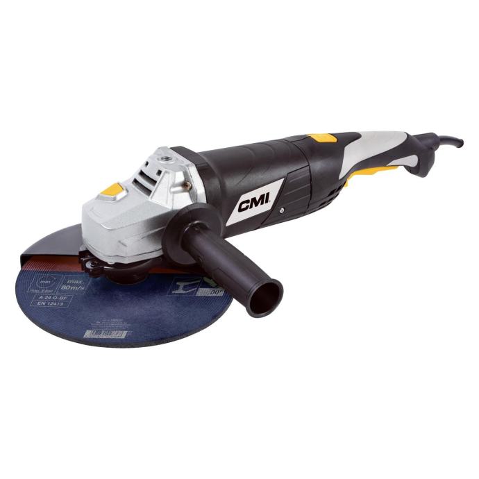 S kotnim brusilnikom CMI C-WIS-2000/230 H boste zanesljivo izvedli rezanje in brušenje kovin ter kamna. Zagotavlja moč 2000 W in hitrost v prostem teku 6500/min (vrtljajev). Za udobno delo je naprava opremljena s 3-položajnim ročajem. Brusni kolut ima Ø 230 mm.