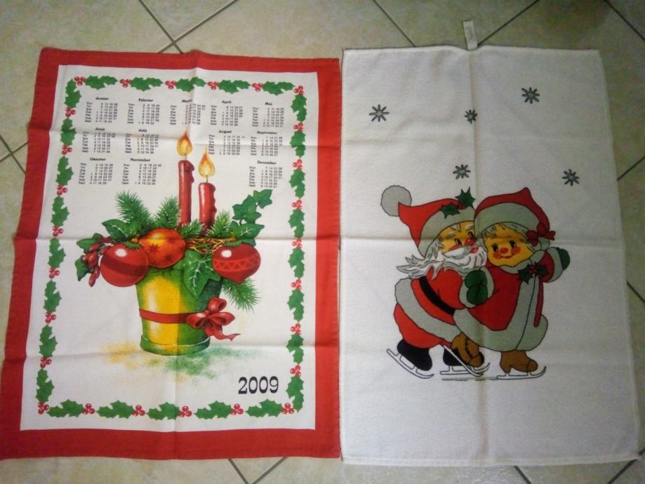 Prodam bombažno belo brisačko z Božičkom vel. 65 x 45 cm in kuhinjsko servieto oz. prtiček z koledarjem leto 2009 vel. 65 x 50 cm.