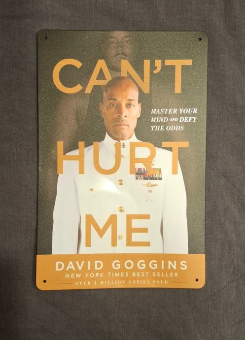 2D plošča naslovnice ikonične knjige Davida Gogginsa - Can't Hurt Me. Lahko se jo da v okvir, na steno ali kar tako nekam položi.