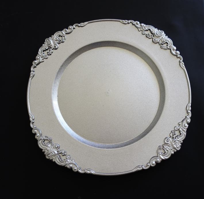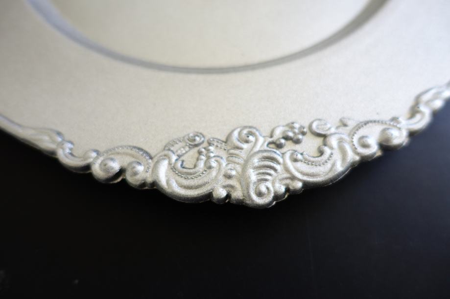 Mat površina, kot peskano, dekor na robovih je v reliefni obliki.