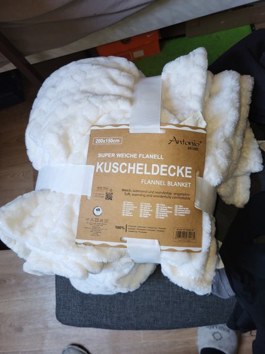 Nikoli uporabljena, zavita, zelo mehka odeja, lahko kot dekor ali za gretje nog na kavču. Mere200x150cm. Ne pošiljam po pošti. Dosegljiv po 15 uri. 041966897bojan
