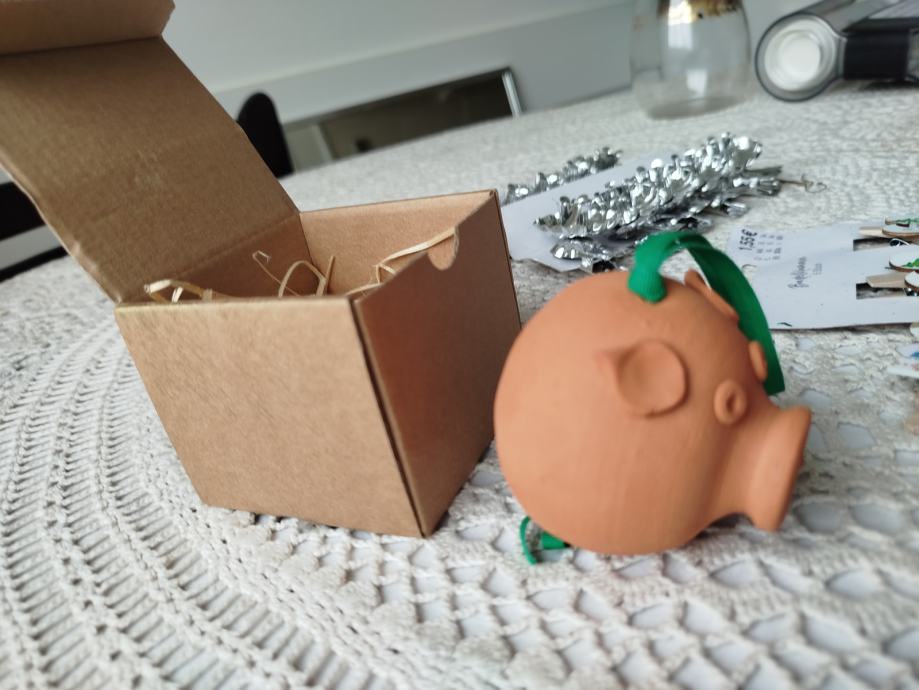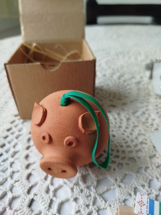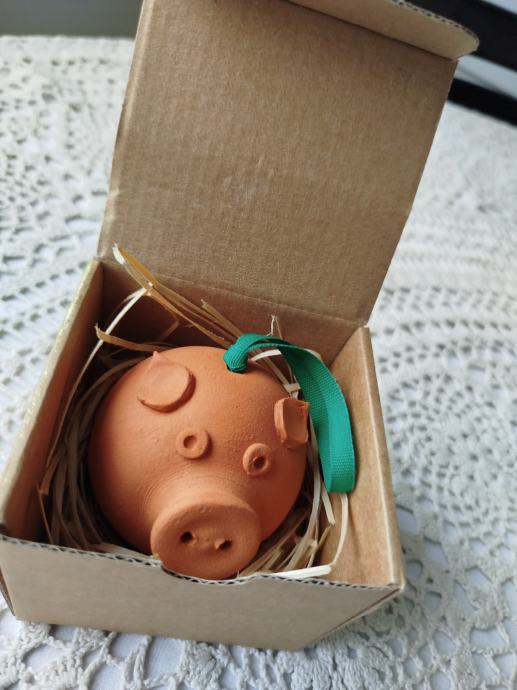 Glinen pujsek za srečo, v darilni škatli vel. 8x7,5x7 cm,