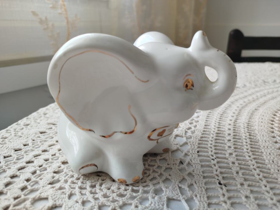 - Porcelan slon s posodo in zlato dekoracijo, vel,. 16x12x11 cm, brezhiben, cena 2 €
