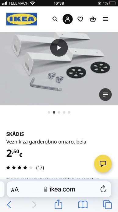Podarim skadis ikea veznik za pritrditev skadis perforirane plošče na omaro. Odprta embalaža a neuporabljen izdelek. Navodila za uporabo so malo popisana s kulijem, kot vidno na sliki. Smo kupili, a žal naknadno ugotovili da nam prostor ne omogoča pritrditve na omaro.