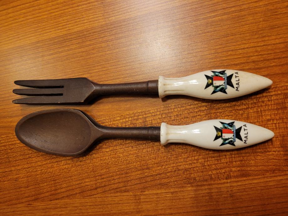 lesenokeramična vilica in žlica, dolžina 28 cm, cena za obe