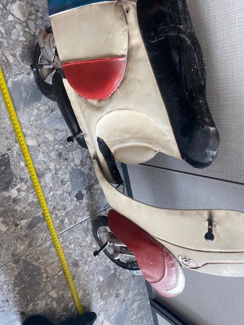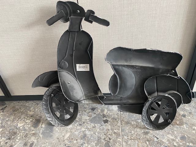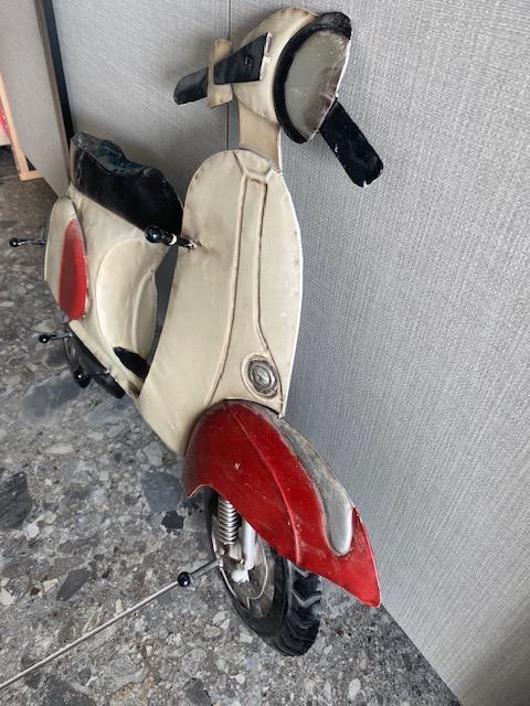 Prodam stenski obešalnik s 5-mi obešali. pločevina. Oblika vespe. Dimenzije: višina 65 cm, dolžina 70 cm.