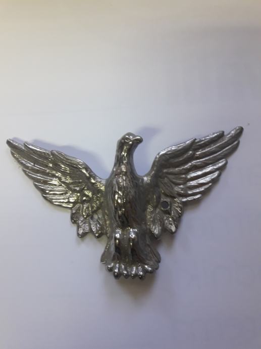 Prodam okrasni kovinski orel z dvema luknjama na strani.