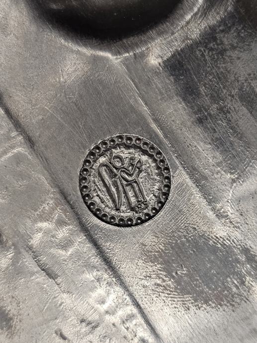 Na zadnji strani je vtisnjen žig z angelom (znak kositrarske delavnice).