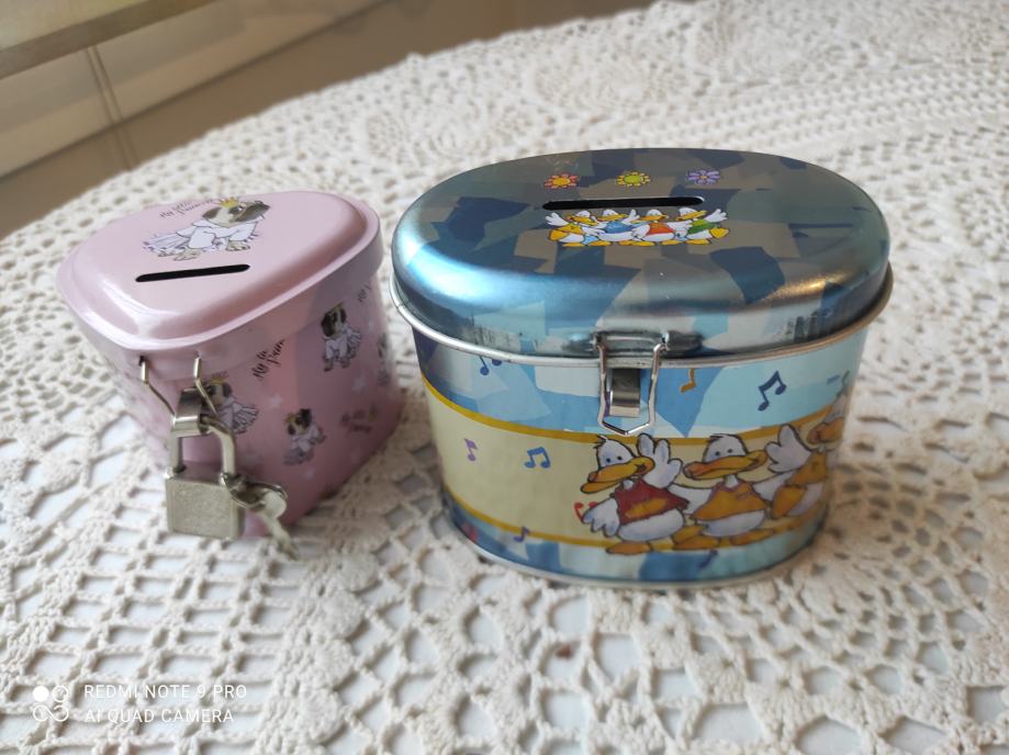 Dva otroška hranilnika s ključavnico in ključkoma,
