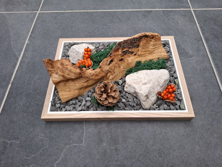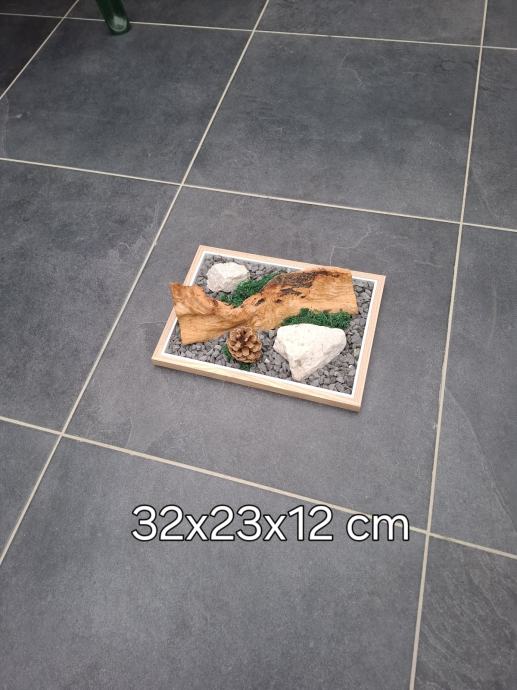 Prodam dekoracijo,sestavljeno iz lesa,okrasnega peska,storža in okrasnih kamnov.Pošiljanje po pošti ni možno,razen če si jo naknadno sestavite sami.Pošljem po ceniku Pošte Slovenije.