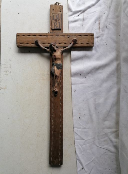 Na voljo je RAZPELO lesen križ kovinski Jezus 21 x 43 cm.