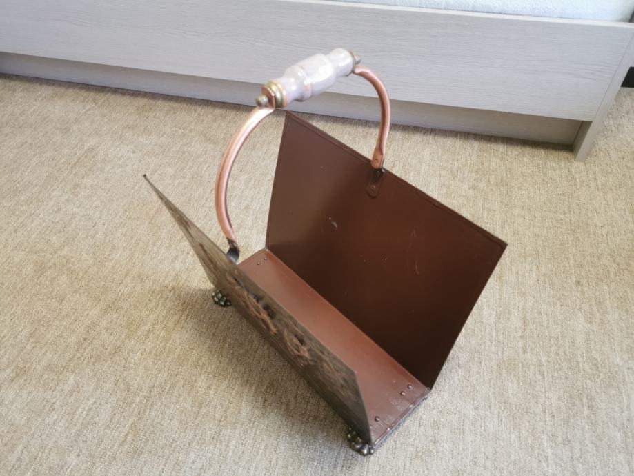 Prodam dobro ohranjeno retro stojalo za časopise iz pločevine. Na obeh zunanjih straneh relief s kmečkim motivom. Zanimiv kos za opremljanje vašega stanovanja. Zelo dobro ohranjeno. Dolžina: 40 cm, širina: 25 cm, višina: 47 cm (z ročajem).