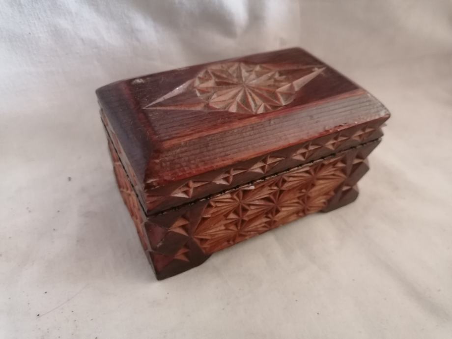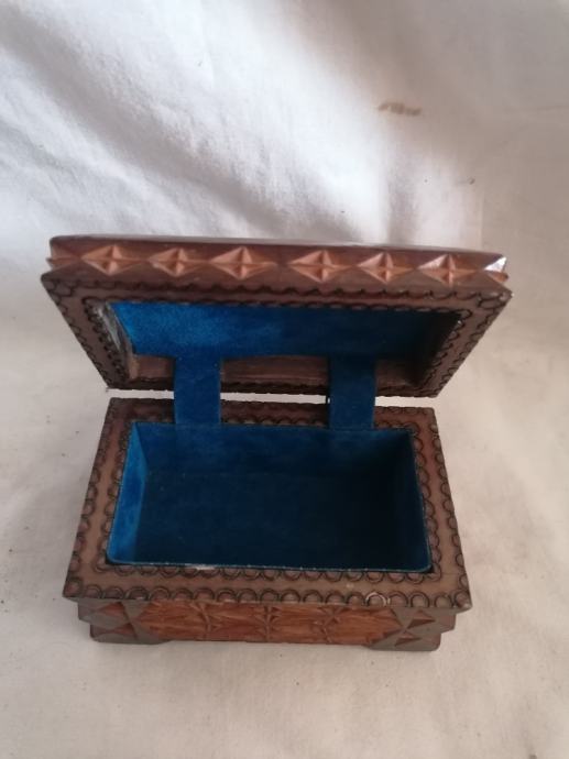 Na voljo je REZLJANA LESENA MASIVNA ŠKATLICA 11 x 7 x 6 cm.