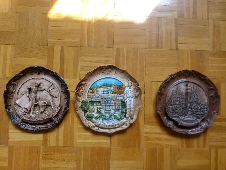 Prodam tri keramične spominske krožnike (Monte Carlo, Barcelona – Sagrada Familia in Torero). So popolnoma nepoškodovani in brez praske. Lahko ločeno oz. vse skupaj.
