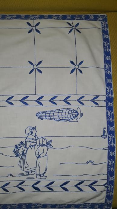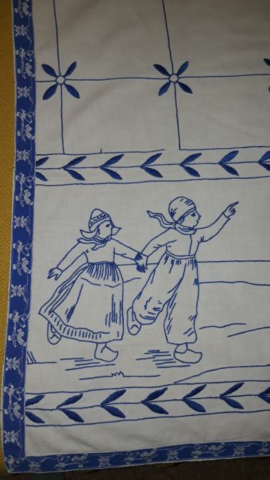 Okrasni vintage stenski prt, neuporabljen, zelo lepo ohranjen, ki nas spomni na stare dobre čase, ko smo kot otroci sedeli na divanu, na steni se je, obvezno, bohotil vezen stenski prt, mi pa smo čakali, da babica iz krušne peči vzame domač, sveže pečen kruh in nam postreže zajtrk.