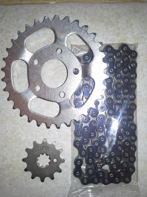 Prodam komplet: nova veriga in dva zobnika (prednji in zadnji), cena 20eur.