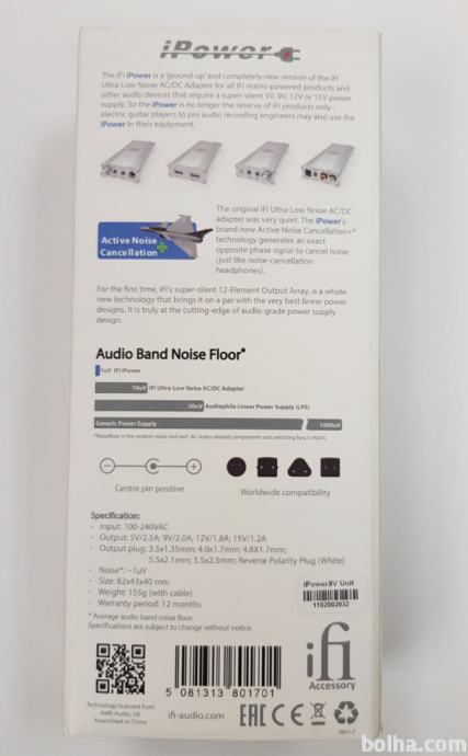 brezhiben, malo rabljen napajalnik za audio naprave, IFI Audio iPower Power Supply 9V, 2A, šum*: 1uV