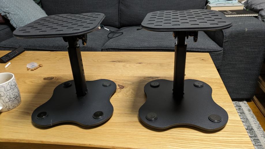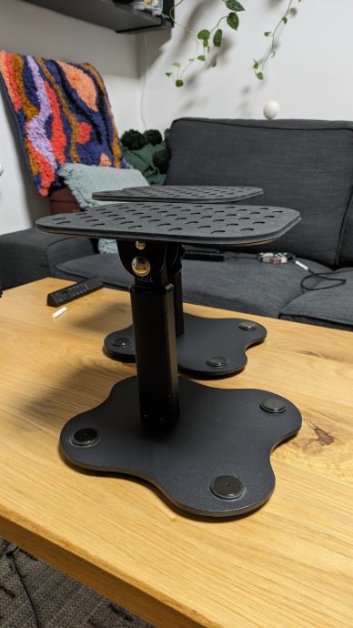Stojala oz. nosilci za zvočnike, primerni za studio. Možnost nastavitve naklona (+/- 10°) in višine (od 235 do 280 mm), zdržijo obremenitev do 15kg.