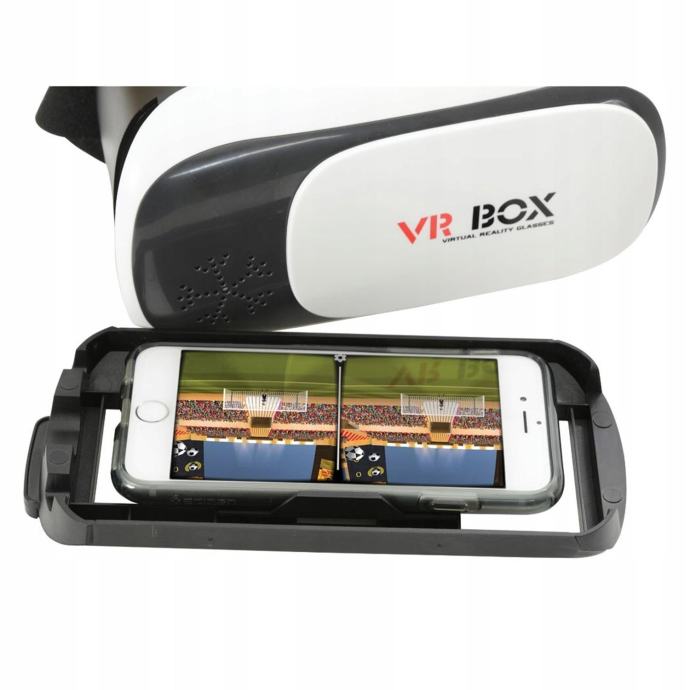 Očala VR BOX so visokokakovostna očala za navidezno resničnost, ki vam omogočajo gledanje grafičnih materialov kot so: filmi, fotografije, Street View itd. ter igranje iger na vašem pametnem telefonu. Vse kar morate storiti je, da namestite in zaženete ustrezno VR aplikacijo na telefonu in jo vstavite v napravo. Predvajanje in gledanje bo v 3D tehnologiji.