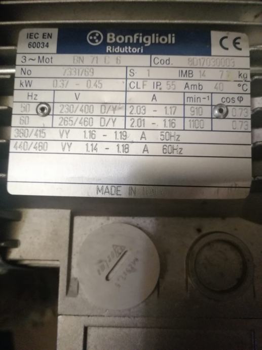 Prodam malo rabljen 3 fazni elektro motor proizvajalca Bonfiglioli.