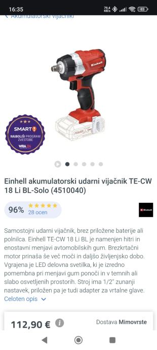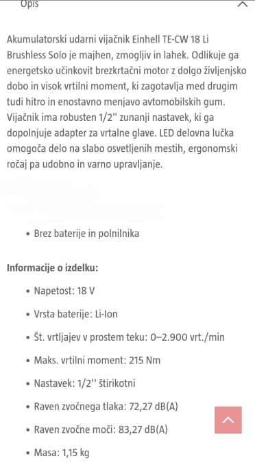 Prodam set aku udarni vijačnik Einhell, vključno 5.2 Ah baterija, hitri polnilec, nastavki za vijake in kovček. Vse je novo in nikoli uporabljeno. Cena samega vijačnika je cca 110e, zato je cena za celoten set zadnja. Prevzem možen v Mariboru.