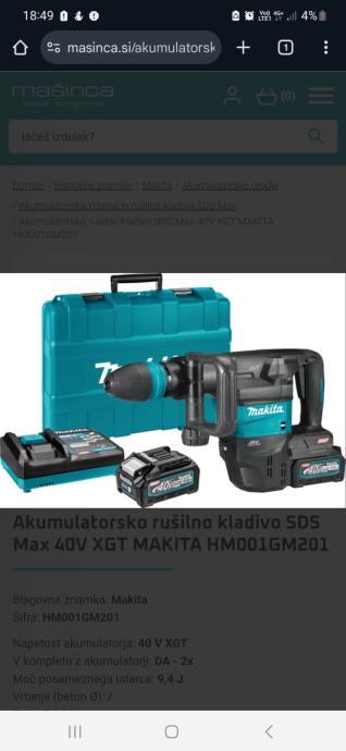 Prodam akumulatorsko kladivo makita 40v .2x baterija 40 v 4ah. Polnilec. Rabljeno samo enkrat. Udarec 10J. Zraven je kovček in papirji. Zadnja cena. Je samo udarno kladivo in ne vrtalno.