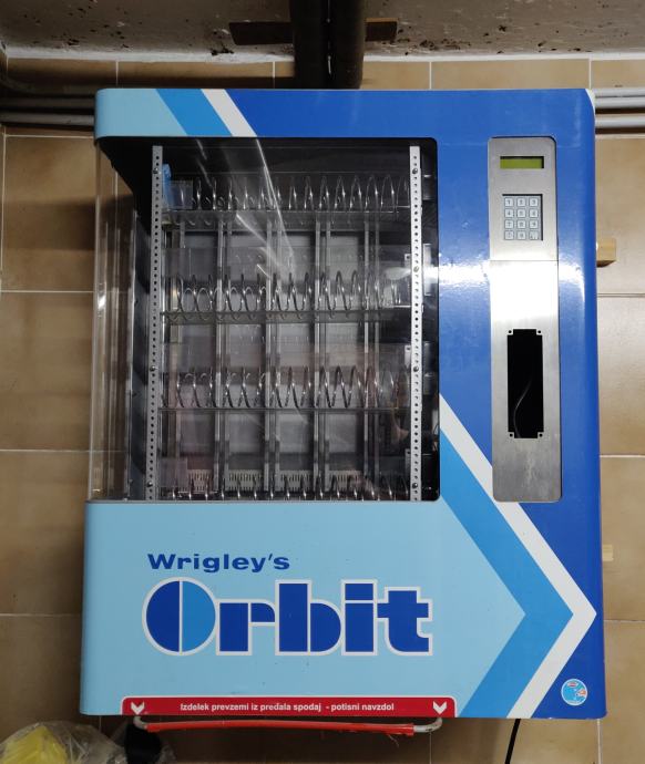 Prodam dobro ohranjen avtomat (vending machine) v osnovi namenjen za čigumije Orbit. Delujoča glavna plošča, vsebuje MDB konektorje za standardne podsisteme.