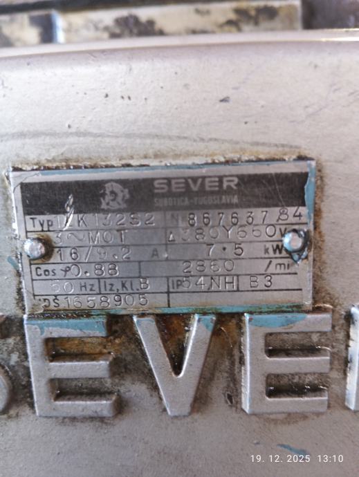 Prodam dva elektromotorja 7,5 kW, 2800 obratov/min, ali 5,5 kW, 2800 obratov/min, znamke Sever, cena po dogovoru, tel.: 031 825 590
