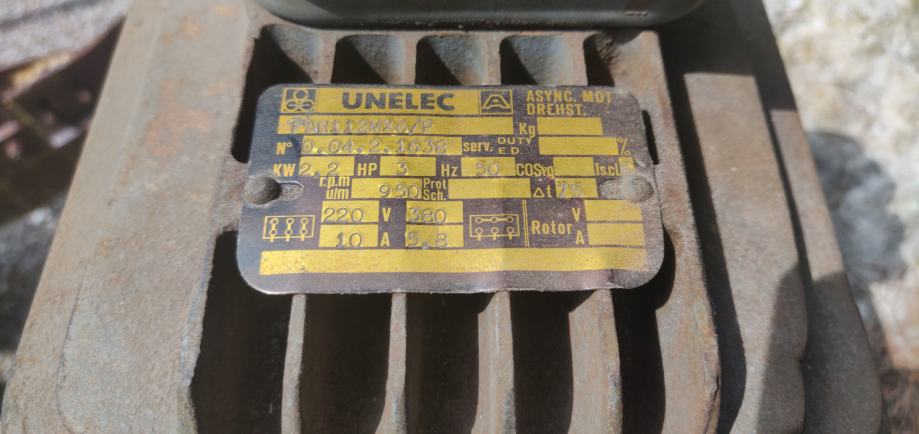 Prodam elektro motor 2,2kw/ 3hp z osovino motorja na obeh straneh,hitrost motorja je 950 obr/min.