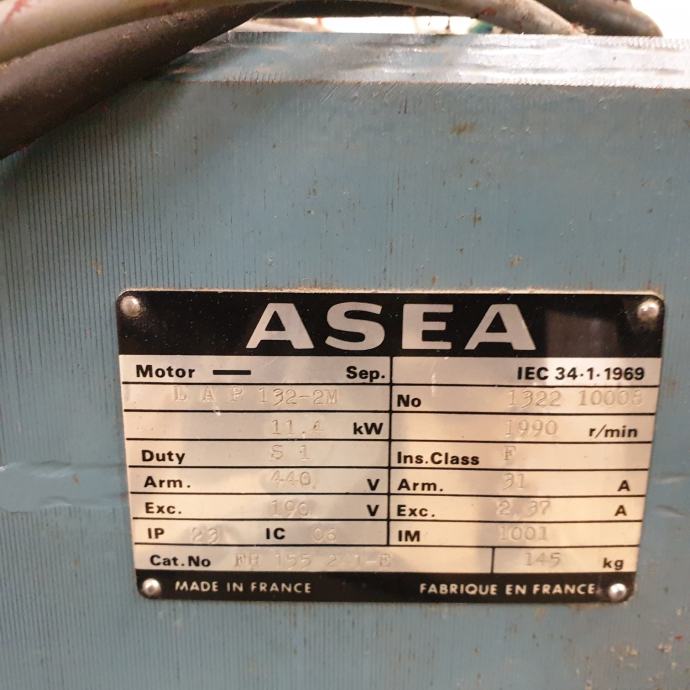 Elektromotor ASEA Francija z regulacijo, 1990 r/min, 11,4 kW, 145 kg.