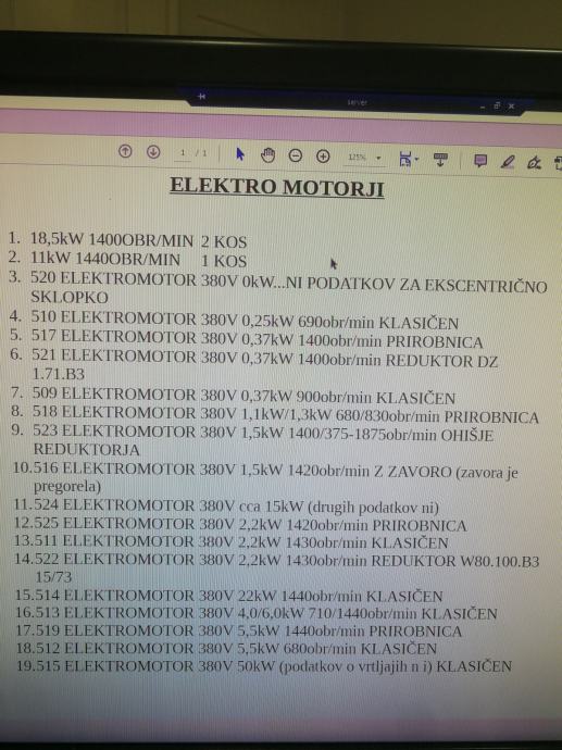 Imamo pribljižno 20 starejših elektromotorjev različnih moči.