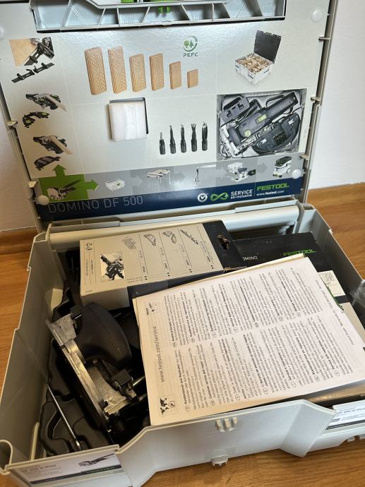 Prodajam vrhunski komplet za lesno povezovanje FESTOOL DOMINO in kovček z originalnimi zatiči.
