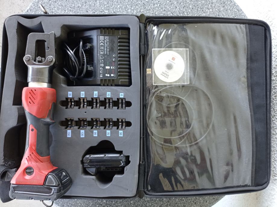 / Akumulatorska hidravlična stiskalnica za kable / Stiskalnica za kabelske čevlje / Klešče za stiskanje / Stroj za stiskanje / Akumulatorska hidravlična stiskalnica / Baterijsko orodje za stiskanje elektro kablov /