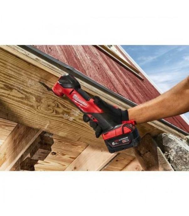• Akumulatorsko večnamensko orodje M18 FMT z brezkrtačnim motorjem POWERSTATE™, podprt z nihajnim zaporedjem gibanja 2,1° levo / desno, je idealen za profesionalno uporabo, npr. v lesu, kovini in plastiki s hitrostmi od 10.000 do 20.000 nihaji /min