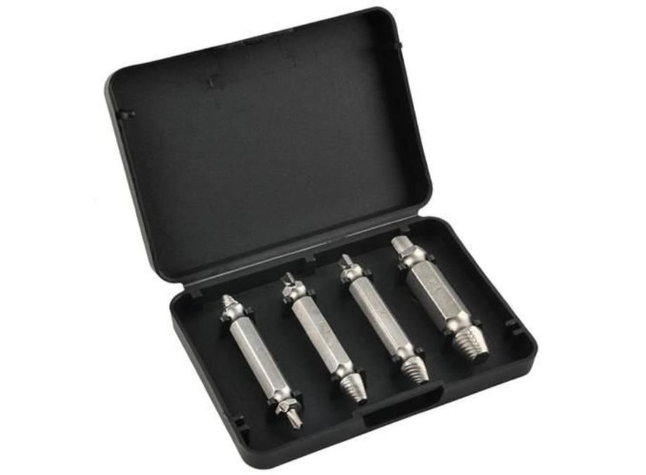 VISOKA KAKOVOST – ekstraktorji so izdelani iz jekla, v kompletu so 4 različne velikosti, ki bodo odlično kos vijakom različnih velikosti.