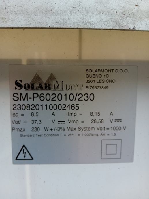 Prodam 3 solarne panele 230W. Cena za vse 3 55€.
