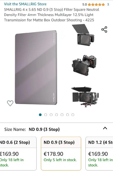 Nov in zapakiran square ND 0.9 filter Smallrig, velikosti 4 x 5.65. Cena na amazonu je 180€.