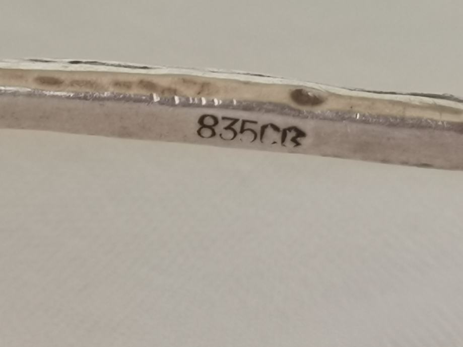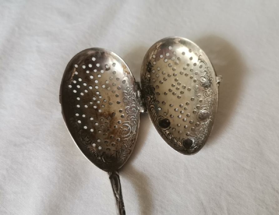 Srebrno cedilo za čaj v obliki žlice, izredno dovršen dekor, 835/1000