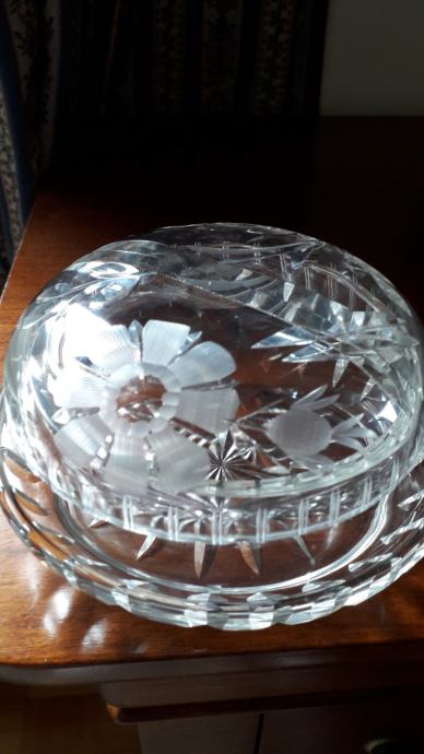 Večjo kristalno šatuljo za ssuho sadje, oreščke ali bombone prodam. Šatulja ima tudi pokriv. Premer šatulje 16 cm, višina 7 cm. Pišite ali pokličite na 01 512 5356.