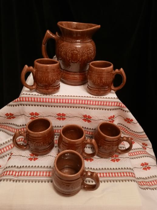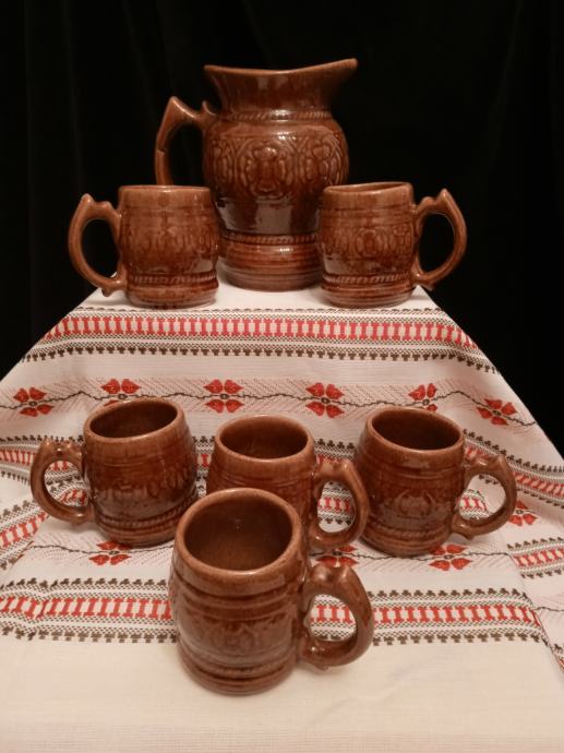 KOMPLET ŠESTIH KOZARCEV Z VRČEM - KERAMIKA.