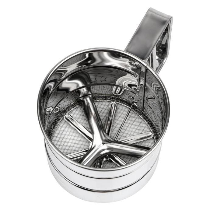 Izdelana iz visokokakovostnega nerjavečega jekla, ta merica sito zagotavlja trajnost in zanesljivost pri uporabi. S svojim ergonomskim dizajnom in praktično zasnovo omogoča enostavno rokovanje in natančno doziranje moko in sladkor v prahu brez packanja ali razsipavanja.