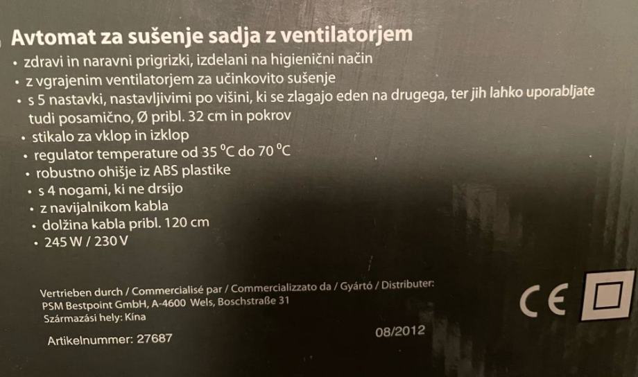 Ugodno prodam aparat za sušenje sadja. Za več info pokličite 031/355-360, prevzem možen v Trbovljah. Možen tudi prevzem v Ljubljani ali Luciji na Obali po predhodnem dogovoru.