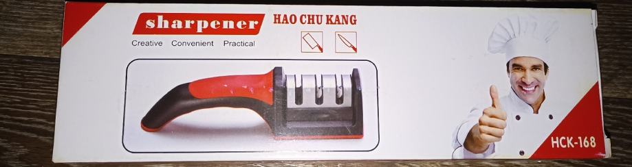 Brusilnik nožev je izredno učinkovit, hkrati pa enostaven in varen za uporabo. Zagotavlja pravilen kot ostrenja, ergonomska oblika in nedrseča podlaga pa omogočata trden oprijem, tako da vam brusilnik ne bo padel iz roke. Rezila lahko odstranite iz držala in očistite pod tekočo vodo. Nudi tri faze brušenja. Za ostrenje nožev morate z roko udobno prijeti za ročaj, z drugo roko pa rezilo noža premikati samo proti sebi.