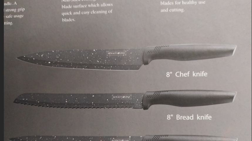Za 30 eur prodam dva noža skupaj z močno trdno škatlo, nikoli rabljeni. Chef nož velik in nož za kruh, dva največja iz kompleta. Velikost obeh: ročaj 12,5 cm, rezilo: 20 cm. Cena je nizka, saj je komplet stal 169 eur, glej sliko. Lahko pošljem tudi po pošti za 2 eur doplačila, Oglej si slike in opise.